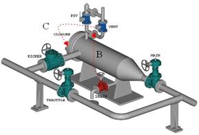 用鑰匙A關(guān)閉PSV的隔離,釋放鑰匙B。用鑰匙B開啟排放閥。